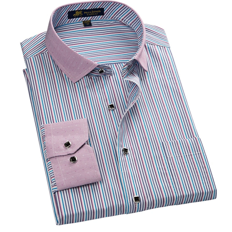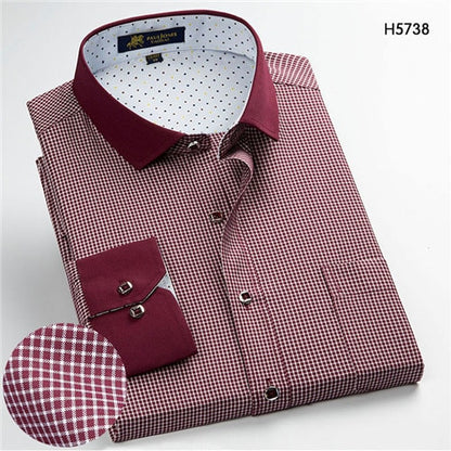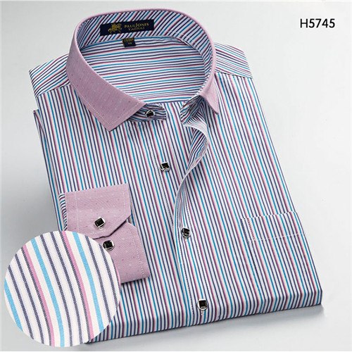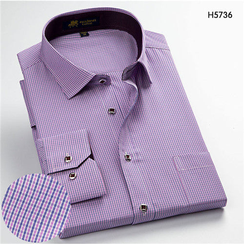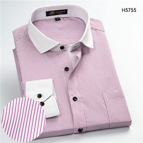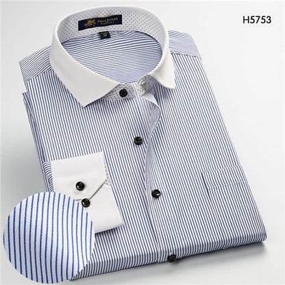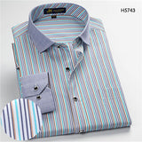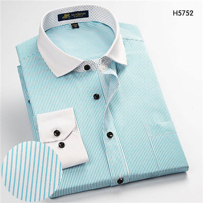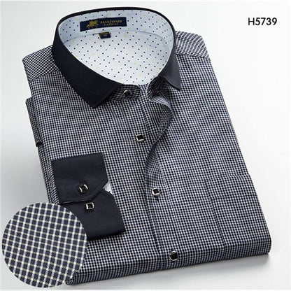 2018 new Patchwork Collar long sleeve slim fit easy care non-iron striped/plaid fashion casual