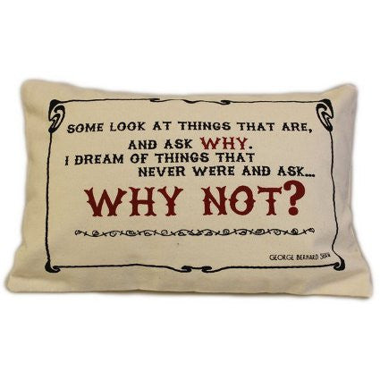 Size approx. 38x25cm. Closes with a zip. Material: Cotton Canvas. Quote:Some look at things that are, and ask why. I dream of things that never were and ask...Why not?