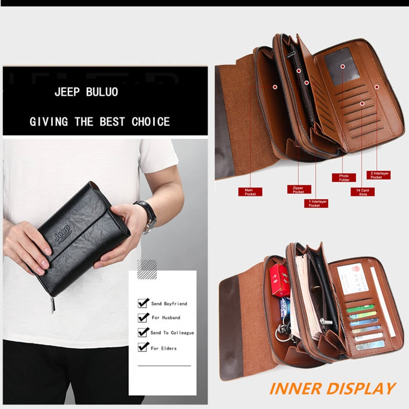 ags Large Capacity Men Wallets Unisex PU Leather Long Purse Male
