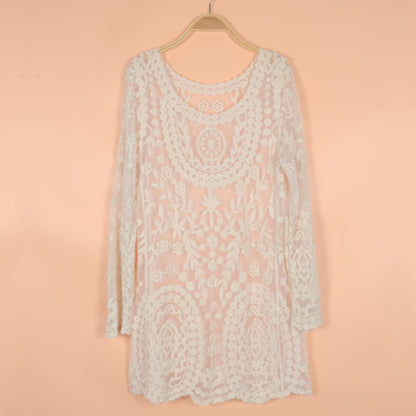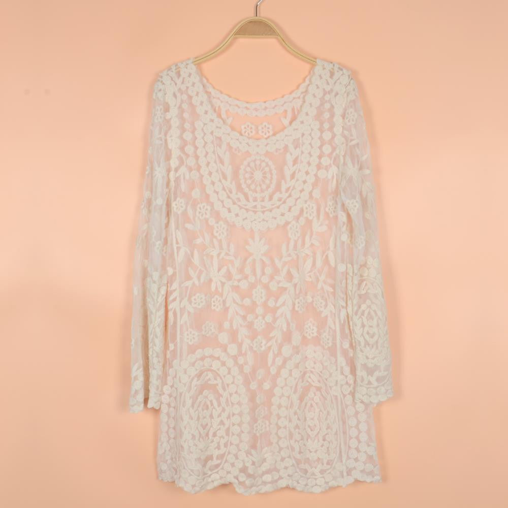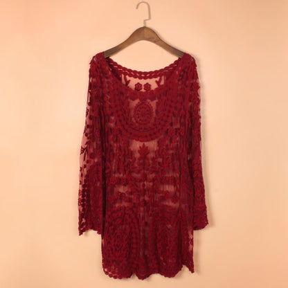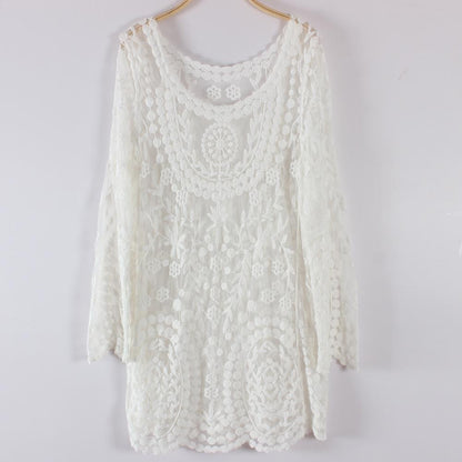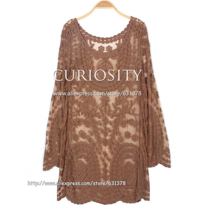 Commemorative Bell Sleeve Dress Casual femininos Crochet Floral Lace embroidery dresses