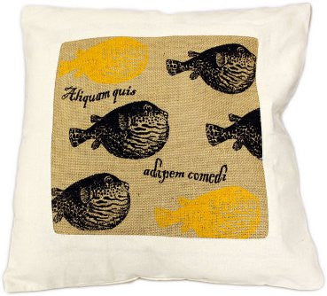 Beautiful cotton canvas cushions with a jute panel colourfully printed with arty motifs and inscribed with witty quotes in Latin. Made with natural washed Jute in India. Each cushion cover is approximately 40cm x 40cm. Closes with a zip.