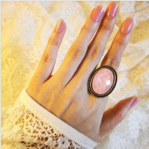 D134 Fashion oval zh301 vintage cutout flower ring pink