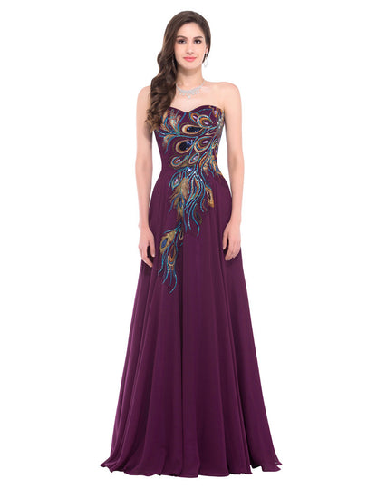 Elegant 2016 Grace Karin Blue Peacock Evening Dress Appliques Formal Women Evening