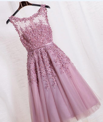 Elegant A Line New Arrival Pink Lace Appliques Short Evening Dresses 2016 Robe