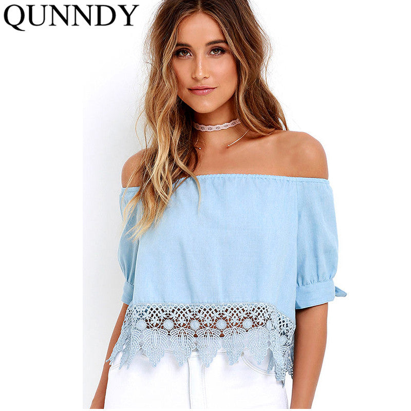 Elegant Blue Off Shoulder Female Blouse Shirt Sexy Summer 2016 Blouse Women Tops