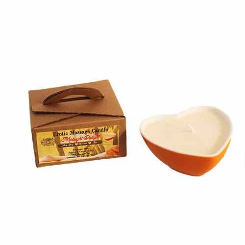 Heart shaped massage candle. Ingredients: Hydrated Soybean Wax, Jojoba Oil, Coconut Oil, Essential Oils: Ylang Ylang, Rosewood, Lime. Each Erotic Massage Candle comes in a beautiful brown display box with information and how to use leaflet inside.