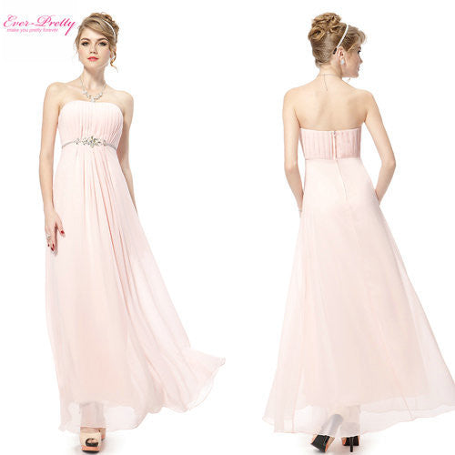 Evening Dresses Ever Pretty HE08125 Elegal Strapless Pink Long Chiffon Evening Special Occasion Dresses