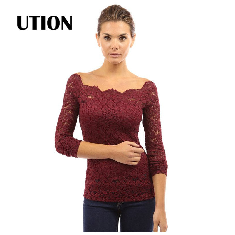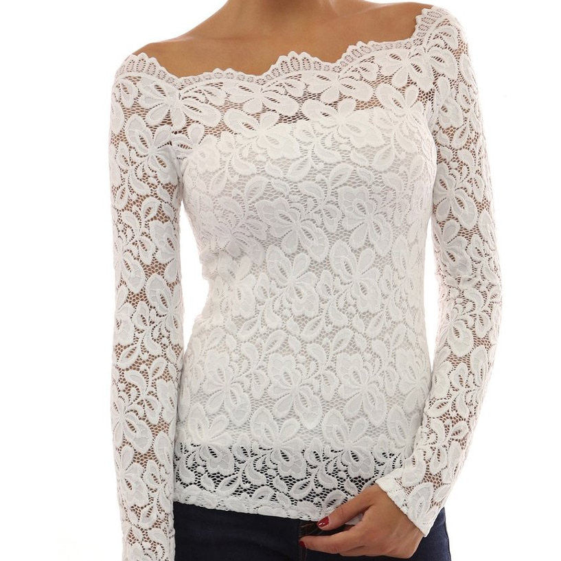 Fashion Blusas Sexy Women Blouses Hollow Out Shoulder Lace Crochet Shirts Long Sleeve