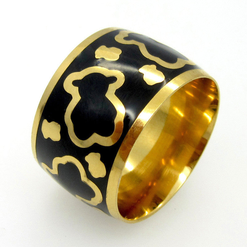 Fashion Brand Design 18 K Gold Stainless Steel Jewelry Enamel Black And White Lovely Bear Ring For Women Tousingly anillo de oso