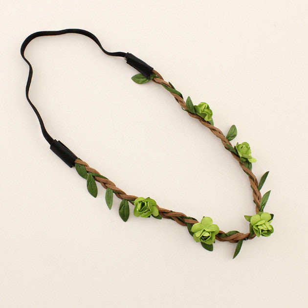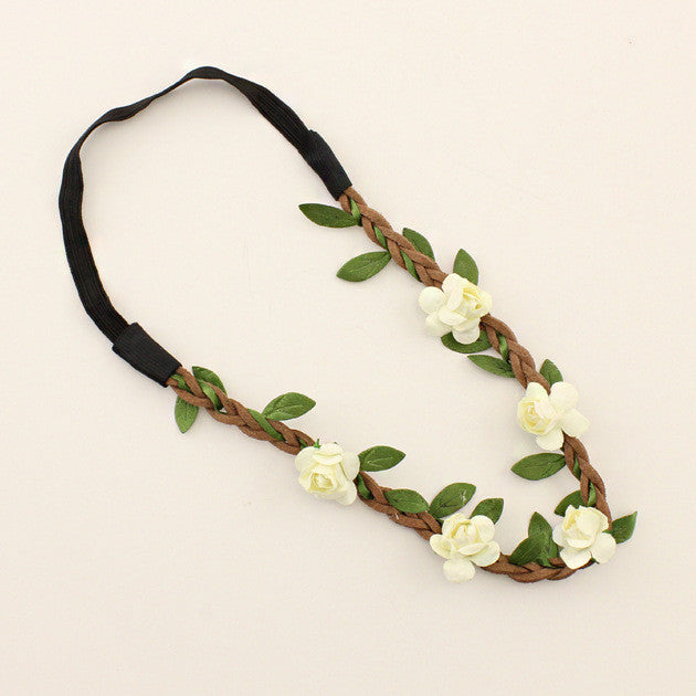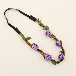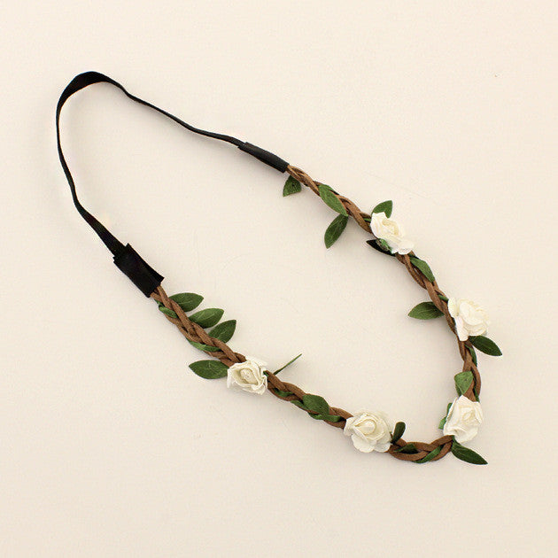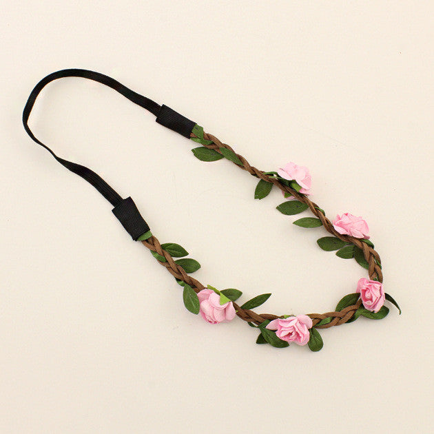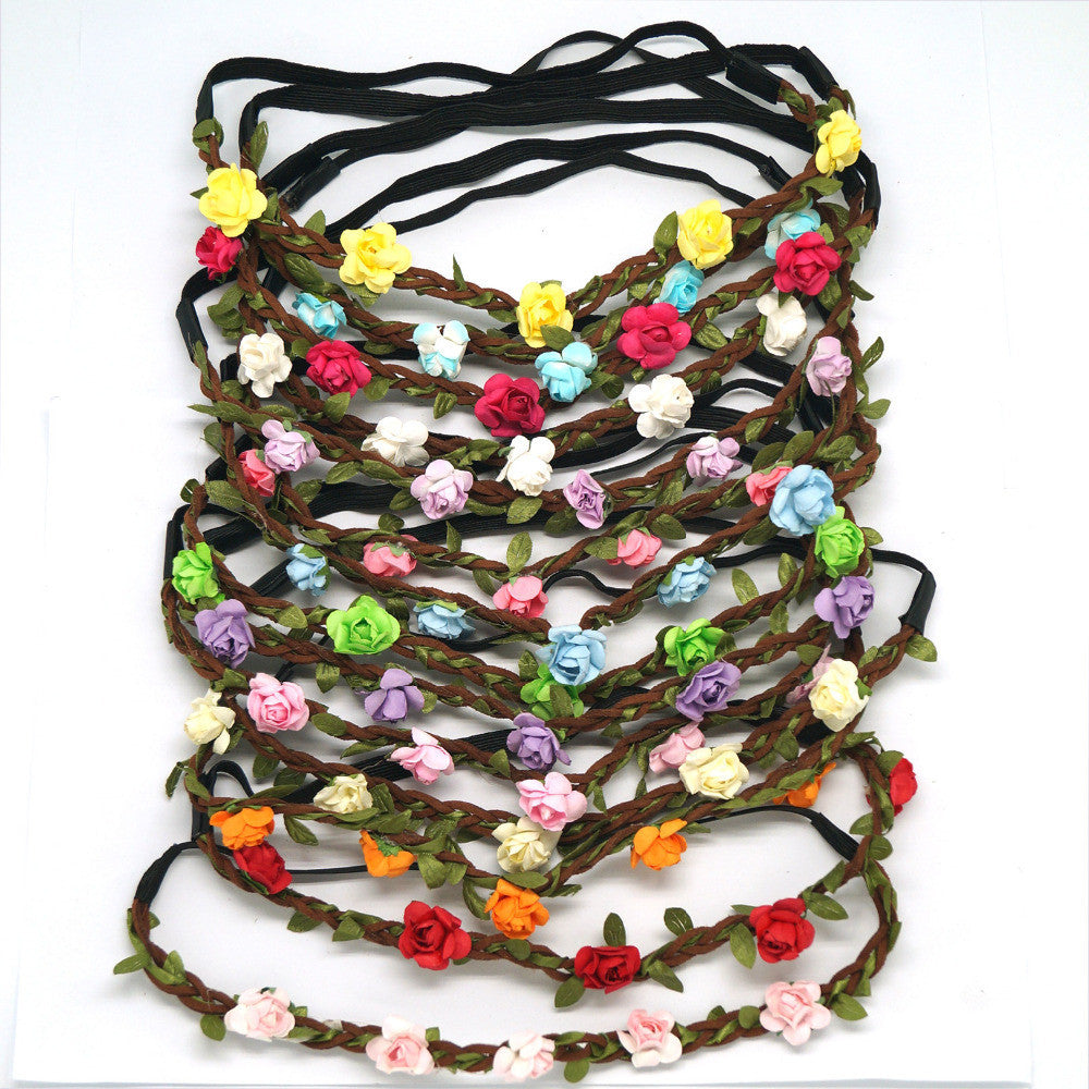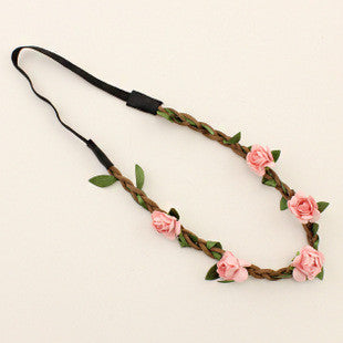 Fashion Women Bride Flower Headband Bohemian Style Rose Flower Crown Hairband Ladies