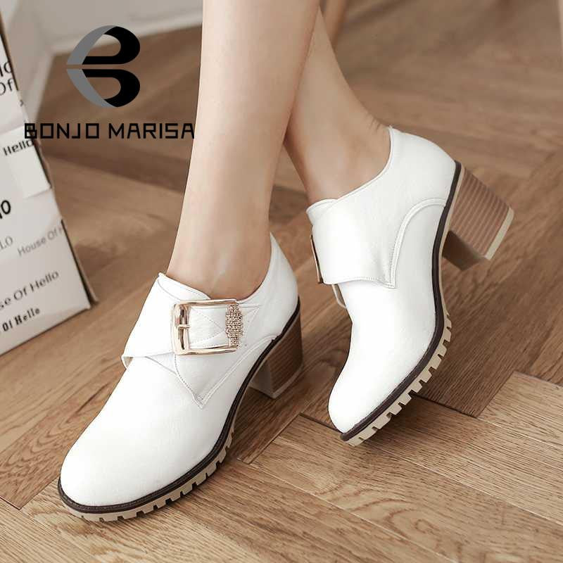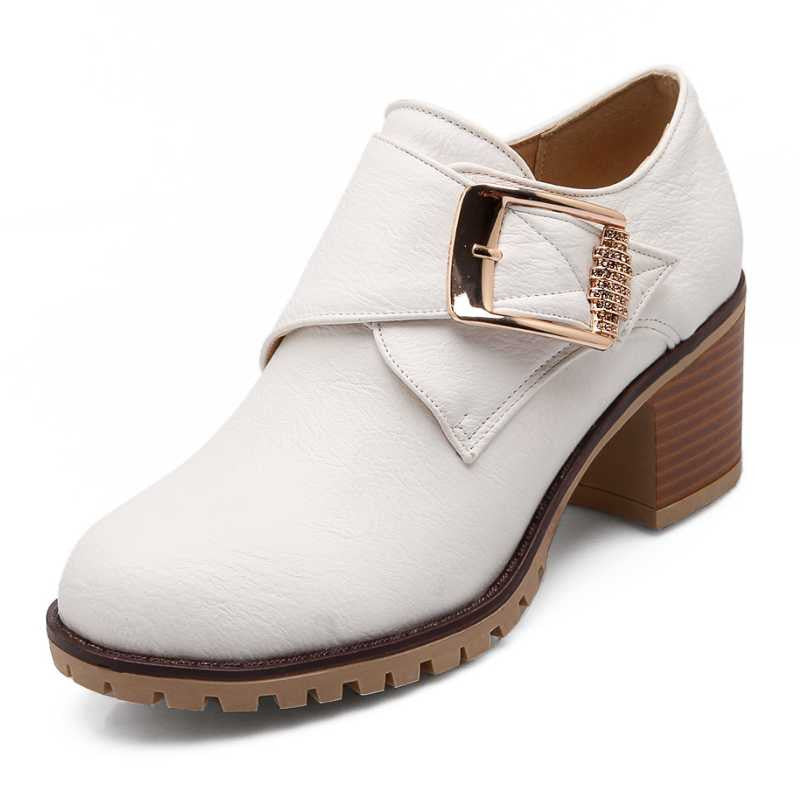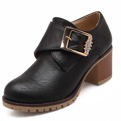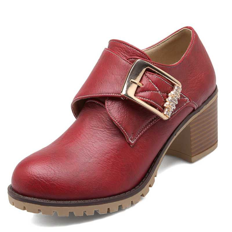 Fashion Women Pumps Roman Style Chunky Med High Heels Buckle Up Wedding Casual Spring Autumn Shoes Round Toe