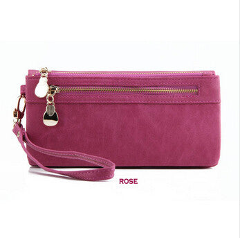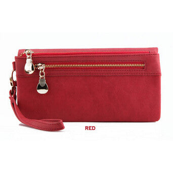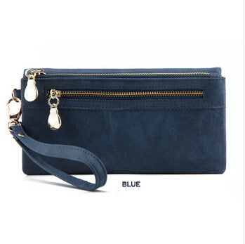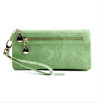 Fashion Women Wallets Dull Polish Leather Wallet Double Zipper Day Clutch