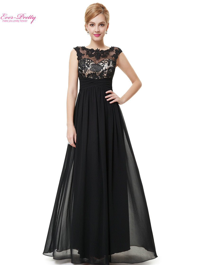 Fashion Women's Long Elegant Maxi Lacy Black Evening Dress Vestido HE08441BK