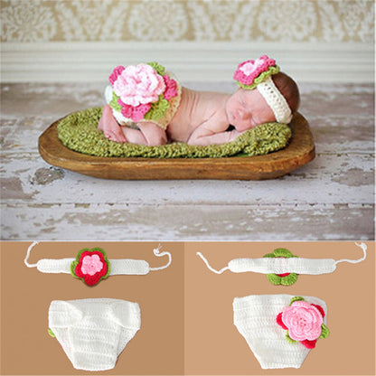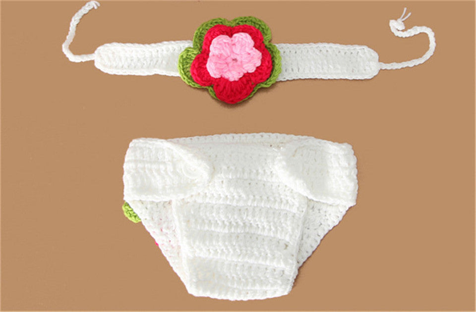 Flower Newborn Costume Baby Hat Short Set Handmade Knit Crochet