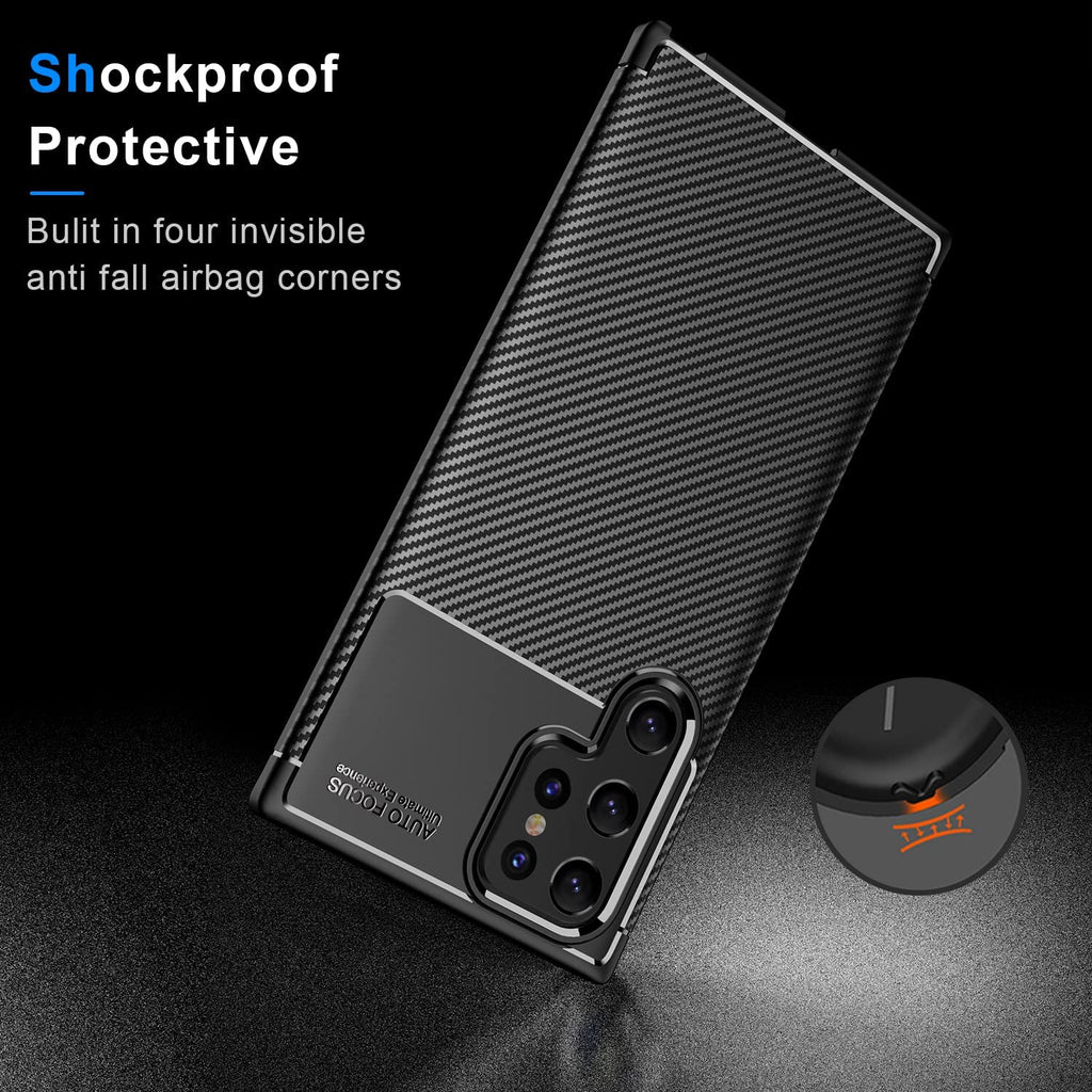 for Samsung Galaxy S22 Ultra Case, [Carbon Fiber Design][Grid Heat Dissipation Lining] Ultra Slim Shockproof Protective Case