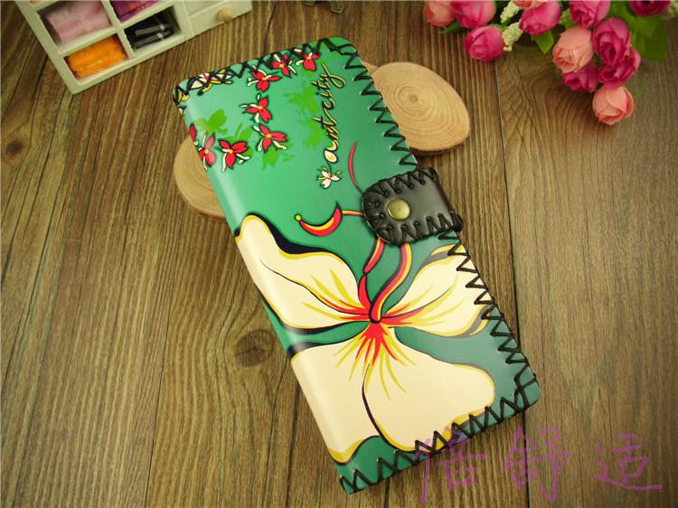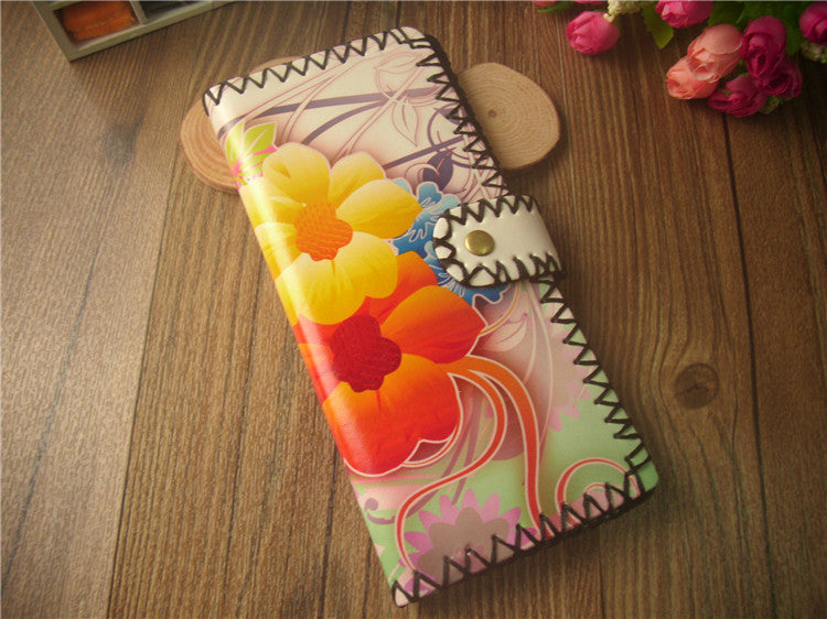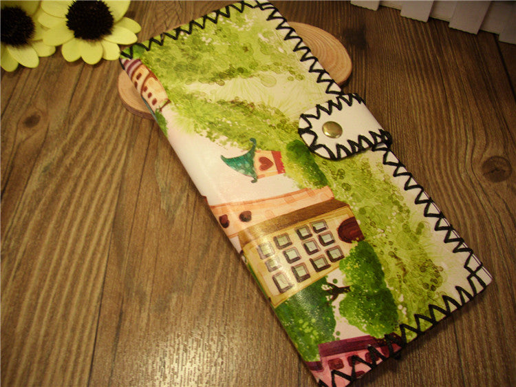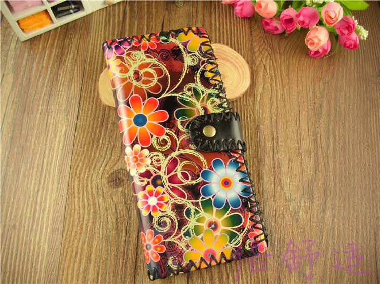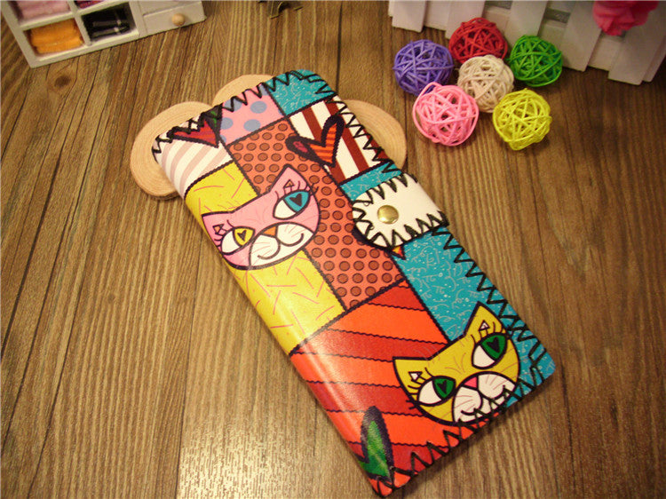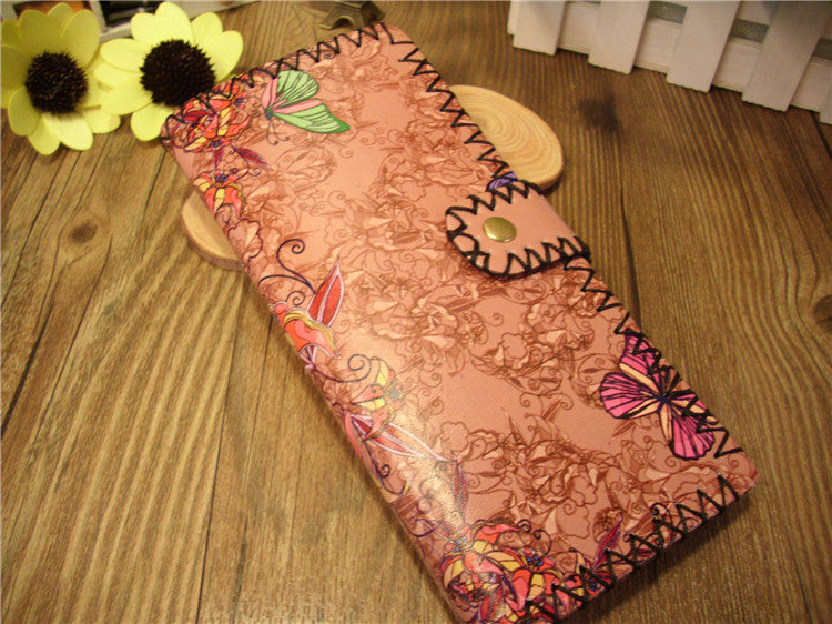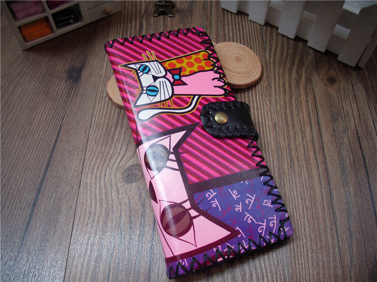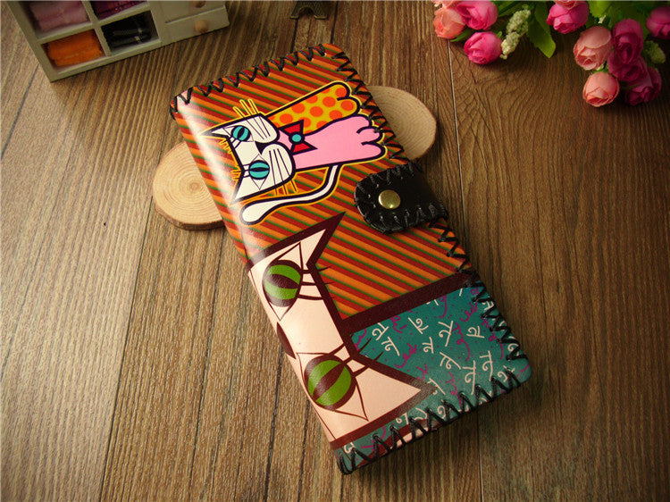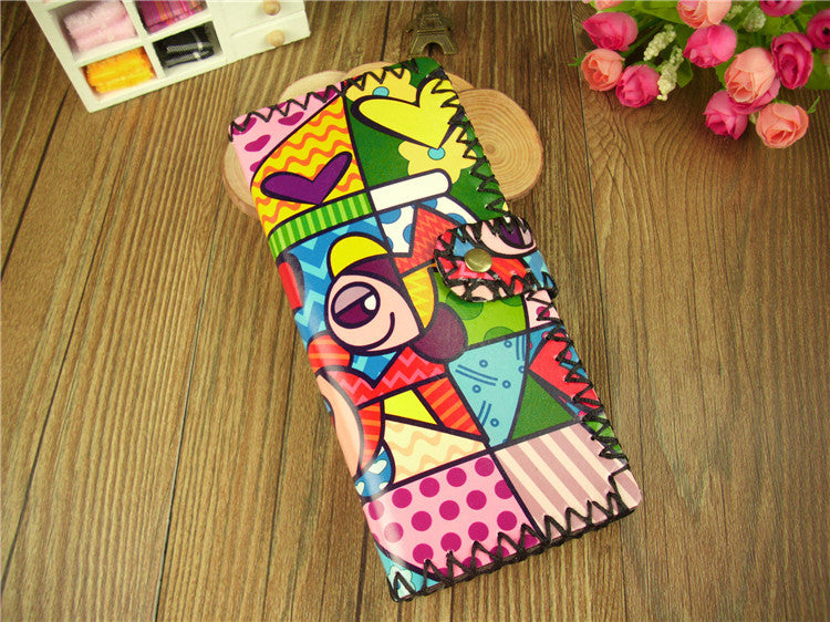 free shipping Fashion doodle women's long design handmade national wallet trend wallet print clutch card holder women's handbag