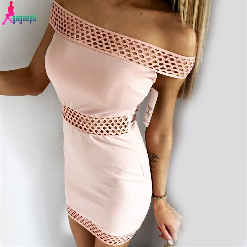 Gagaopt 2016 Mesh Pink Blue White Dress Sexy Sheath Hollow out Summer Dress Bodycon