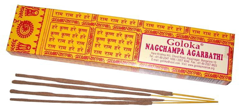 Goloka Incense is hand rolled in the Indian Incense Capital; Bangalore. As a traditionally made incense it contains only the finest organic ingredients and no animal products, even the packaging is 100% recycled. The Goloka Nag Champa Incense is said to be a lighter Nag Champa then the Satya version and some say that because of this it is more suited to meditation and prayer.