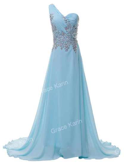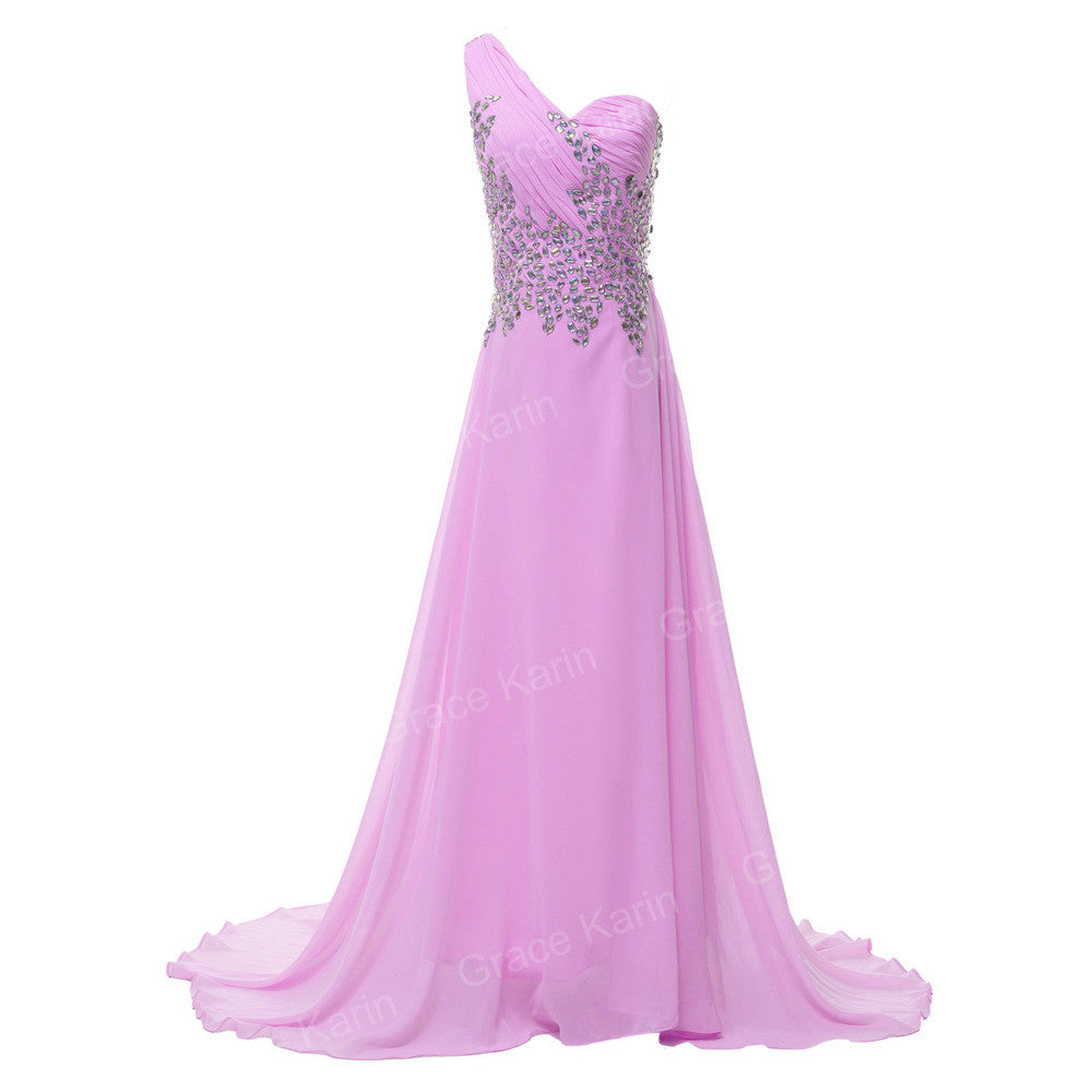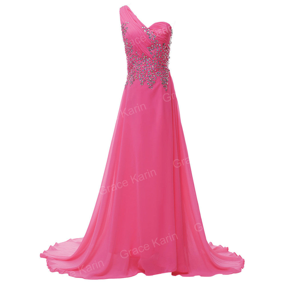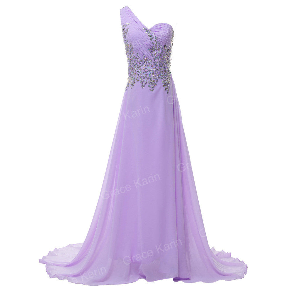 Grace Karin One shoulder Elegant Long Navy Blue Evening Dresses Purple Pink