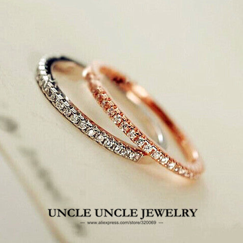 High Quality!!! FREE SHIPPING Sterling 925 Silver Rose Gold Plated 25 Pieces Rhinestones Inlaid Lady Finger Ring Wholesale