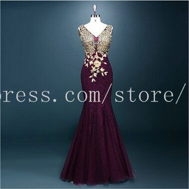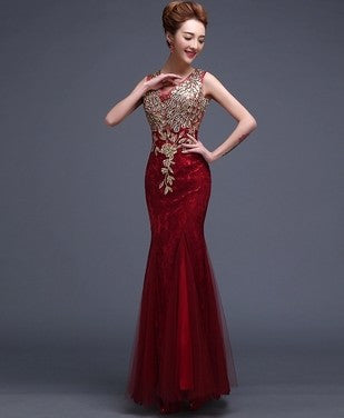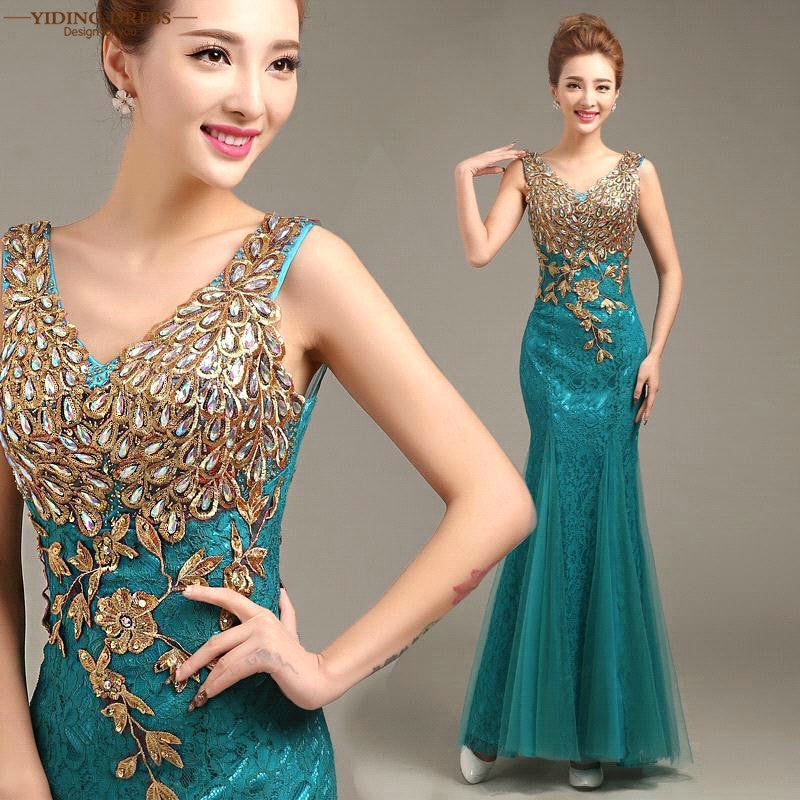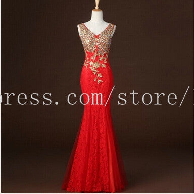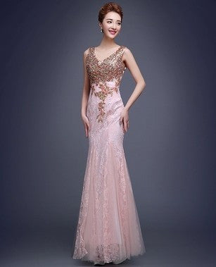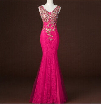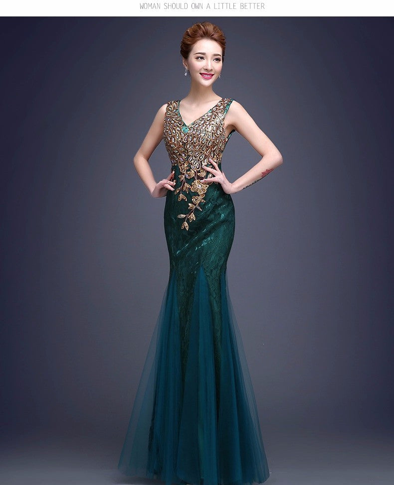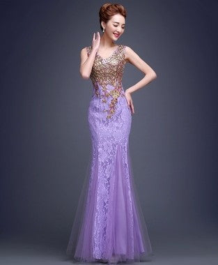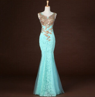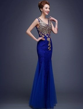 Hot New Double-Shoulder V Neck Mermaid Embroidery Beading Royal Blue