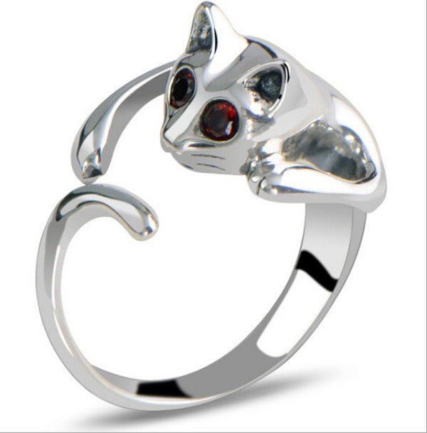 Hot sale !! fashion high quality shinny polished rhinestone eyes adorable opening cat ring