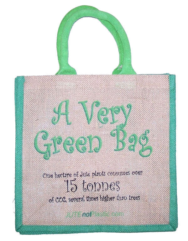 These fairly substantial and jolly strong jute bags are called Tantra Bags. Why? Because that’s what they call these kind of slogan bags in India. Often made with Bollywood designs or such like we have redesigned them for the European market. Currently four slogans available each with a distinct jute eco-message to proclaim. Good fun, practical, great value and promoting a worthwhile message about jute . Also carry the JuteNotPlastic.com tag.