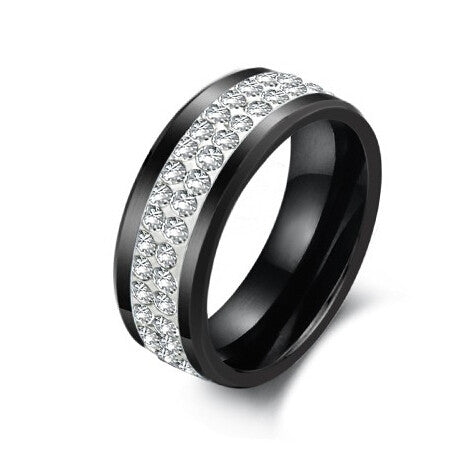 Korean jewelry black ceramic ring two rows of space crystal rhinestones fashionable stone ring