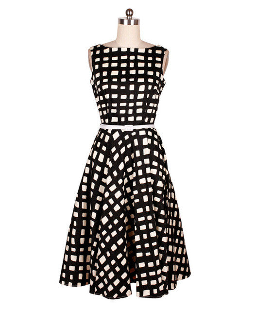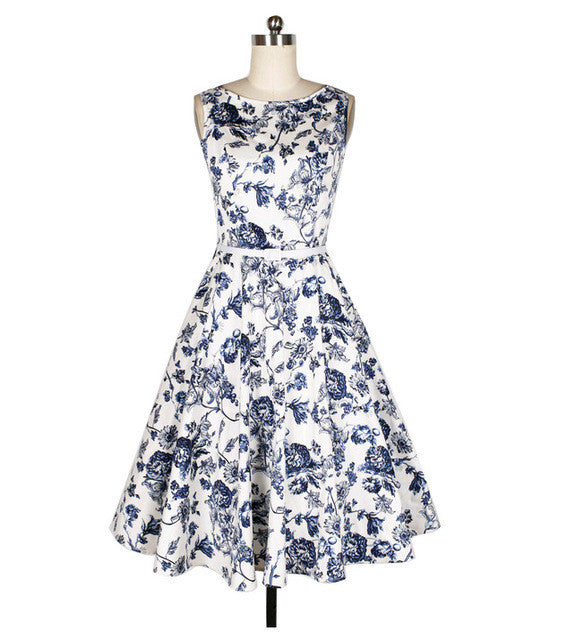 LANLAN Peony Print Floral Sleeveless 50s swing Dress with Belt 2017 Women