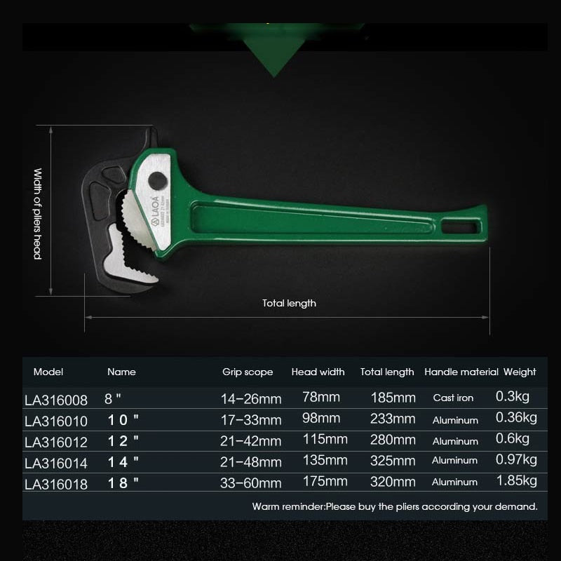 LAOA Pipe Pliers Multifunction Aluminum Rapid Ratchet Water Pump Tube Wrench Forceps CR-V Tongs Head Joint Plier Set Hand Tool