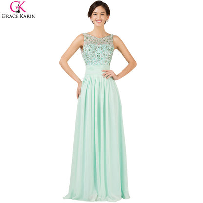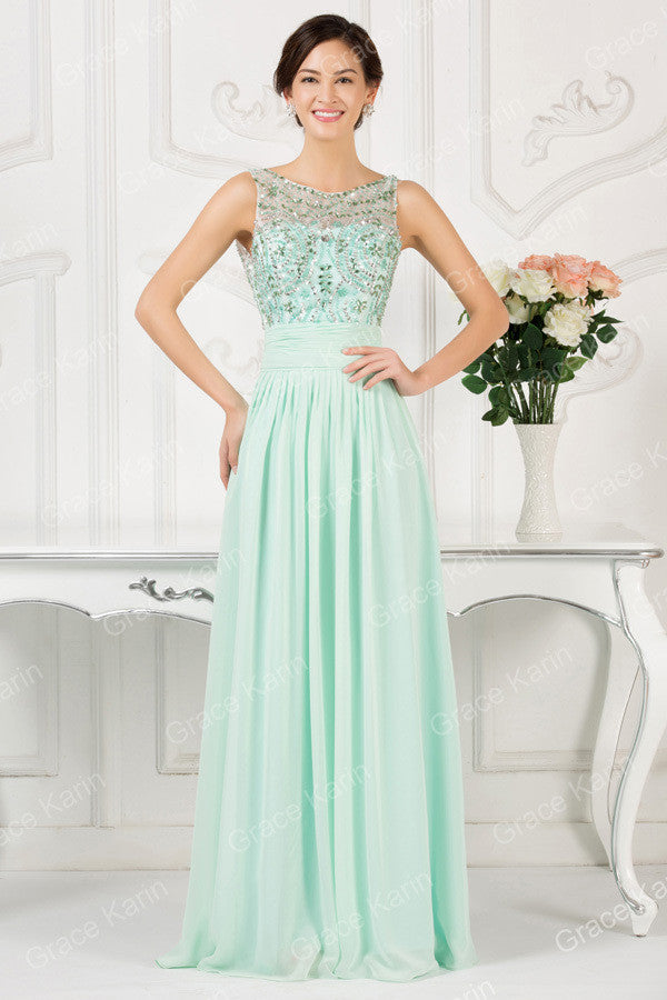 Light Green Evening Dresses 2016 Grace Karin Backless Sleeveless Bead Chiffon