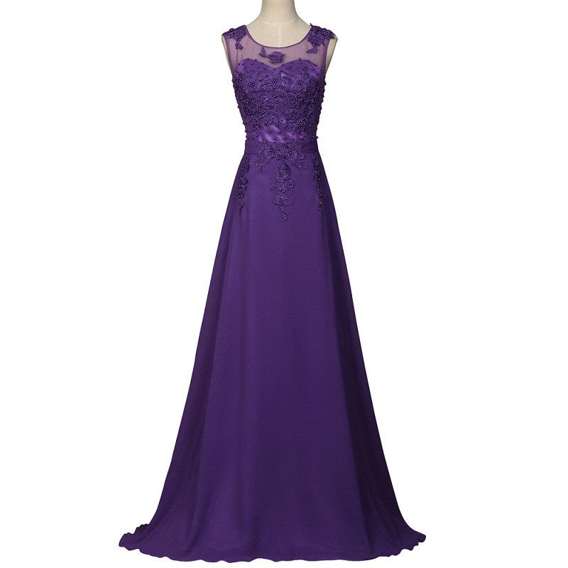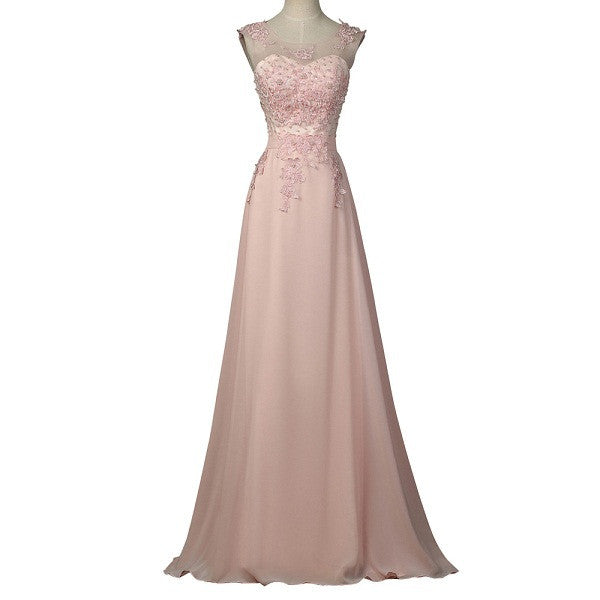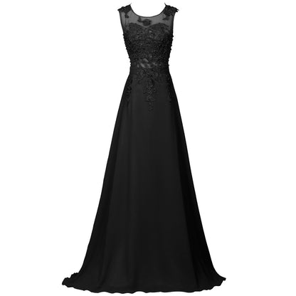 vestidos de noite Feature : Crew Neck, beadings and appliques embellished