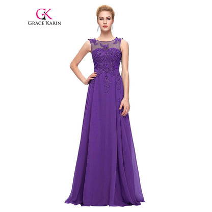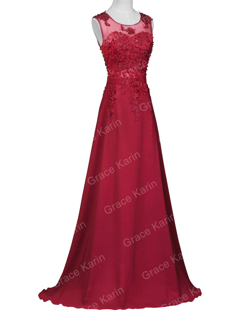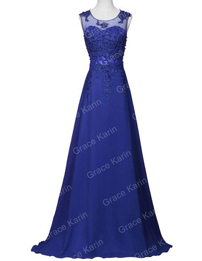 Long Evening Dress Grace Karin Sleeveless Formal Prom Gown Blue Red Black Beading Chiffon