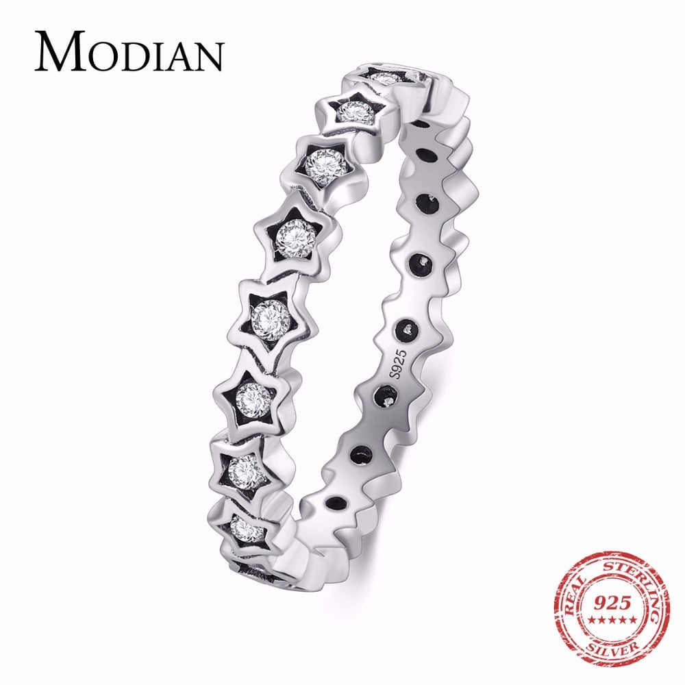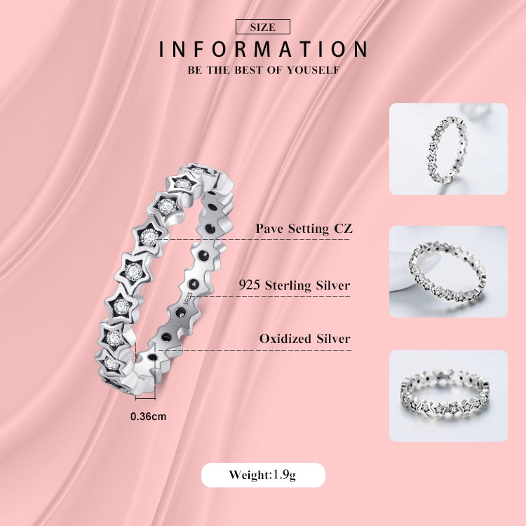 Luxury Original Delicate Solid 925 Sterling Silver stars Finger Ring Authentic