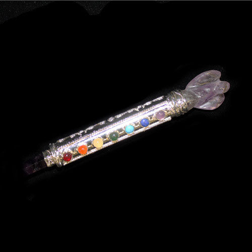 Metal Chakra Wand - Silver & Amethyst