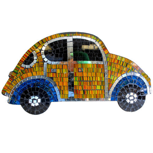 Size: 43 cm x 20 cm; Made from chipboard, cut glass and paints. Metal wall mounting hook on the rear of mirror for easy mounting.