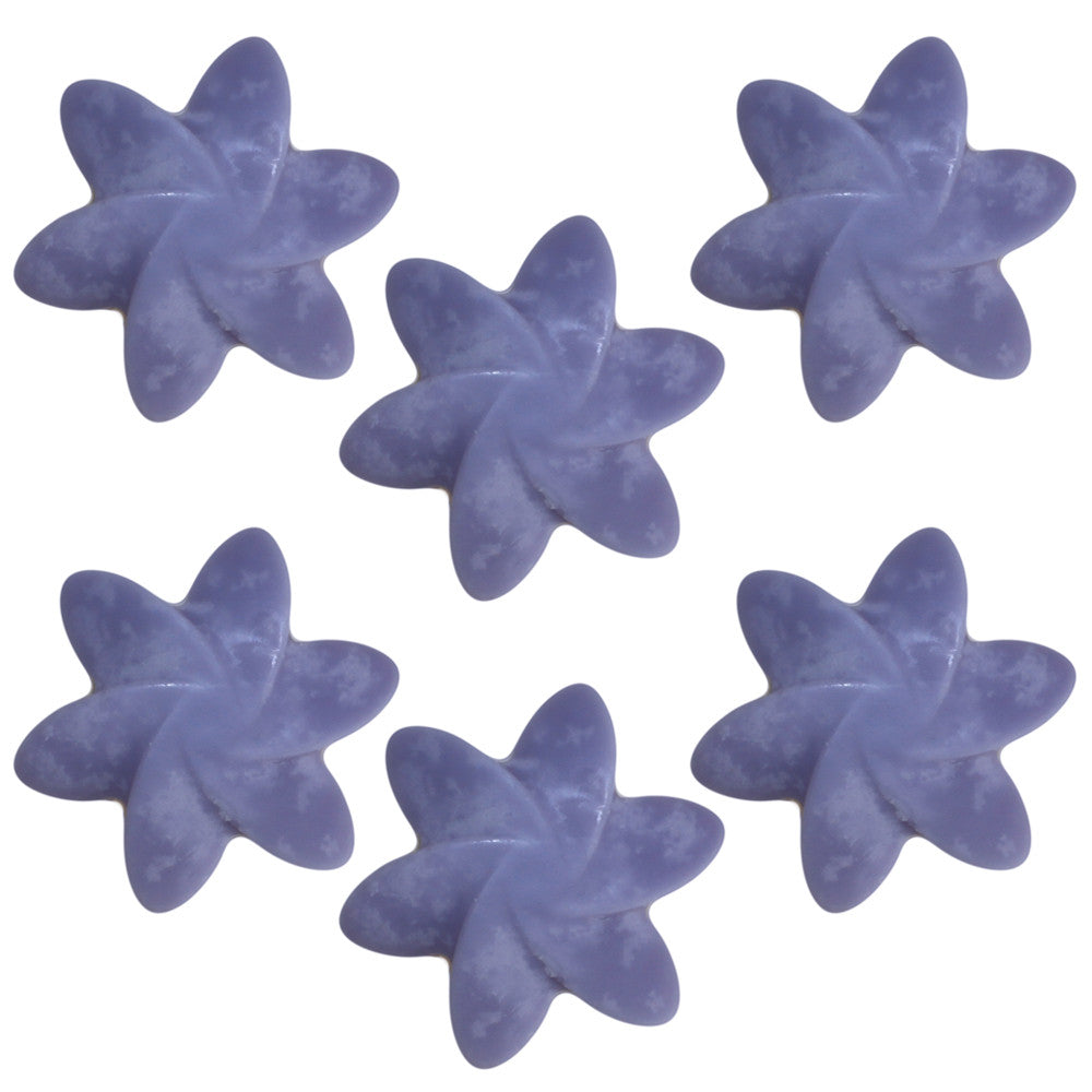 6x wax melts (each weighs approx. 18g), flower shape; gift packed in a plastic pouch. Approx size of each melt: Dia 40mm H:20 mm Ideal for Oil Burners. To prevent fire: Burn within sight. Keep away from things that catch fire, also from children and pets. Do not add oils or water. Use only in oil burners. Flame should be 3 cm from the pot. Do not heat if pot contains less than 1 cm of wax.