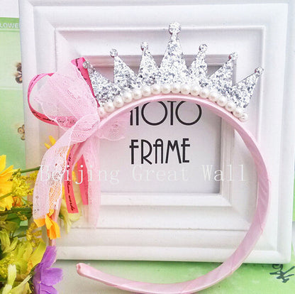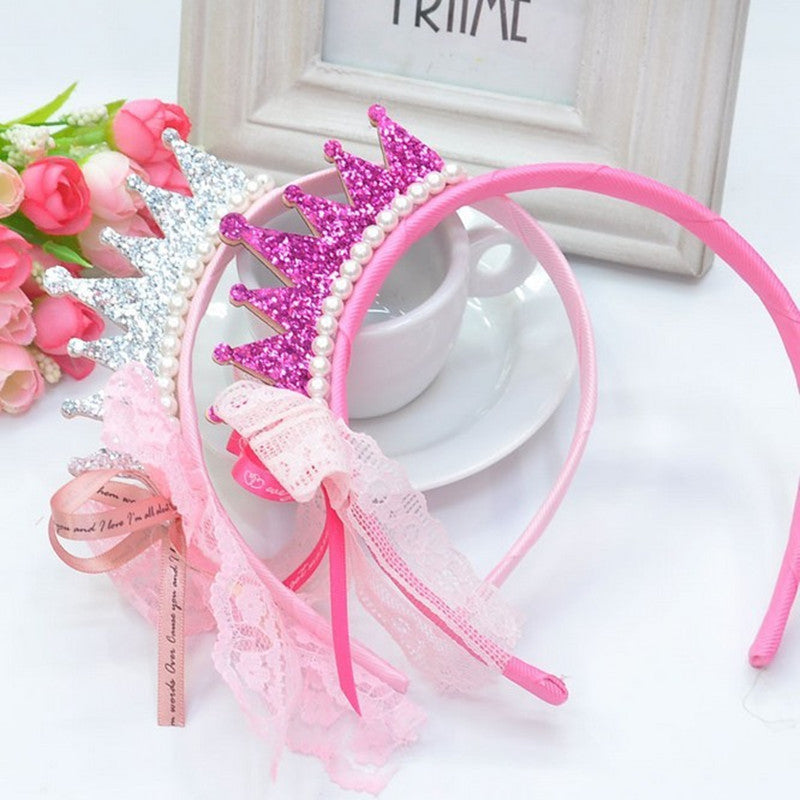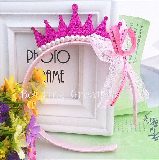 New 2016 Girls Hair Bands Pearls Resin Diamond Lace Bow Ribbon Crown Princess Children