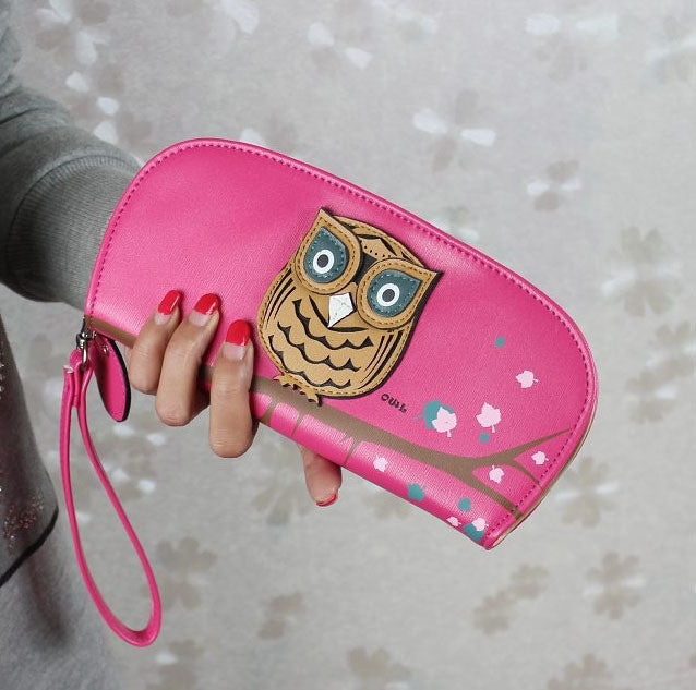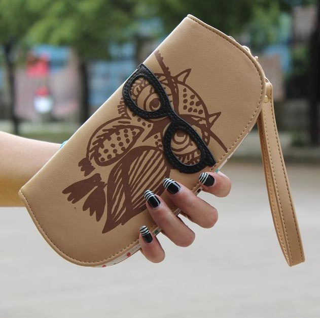 New Arrival Cute Owl Hollow Three-Dimensional Printing Rounded Zipper Long Women Wallet Ladies
