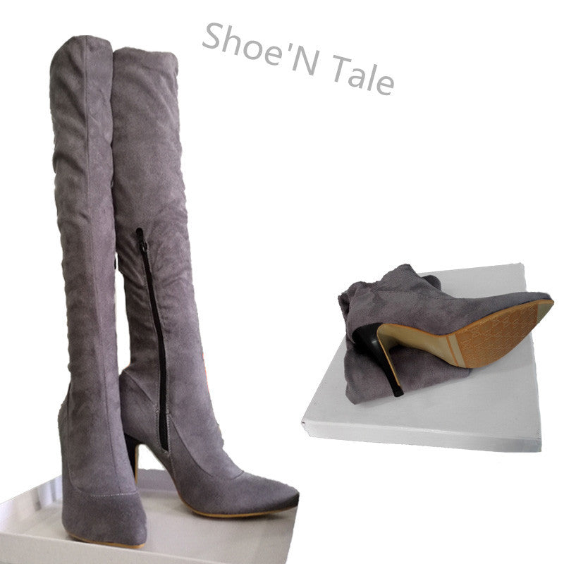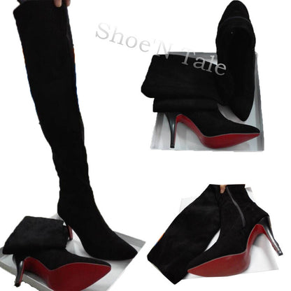 New Arrival OliviaPalermo style women keen thigh boots Red bottom style slim boots woman long genuine leather boots