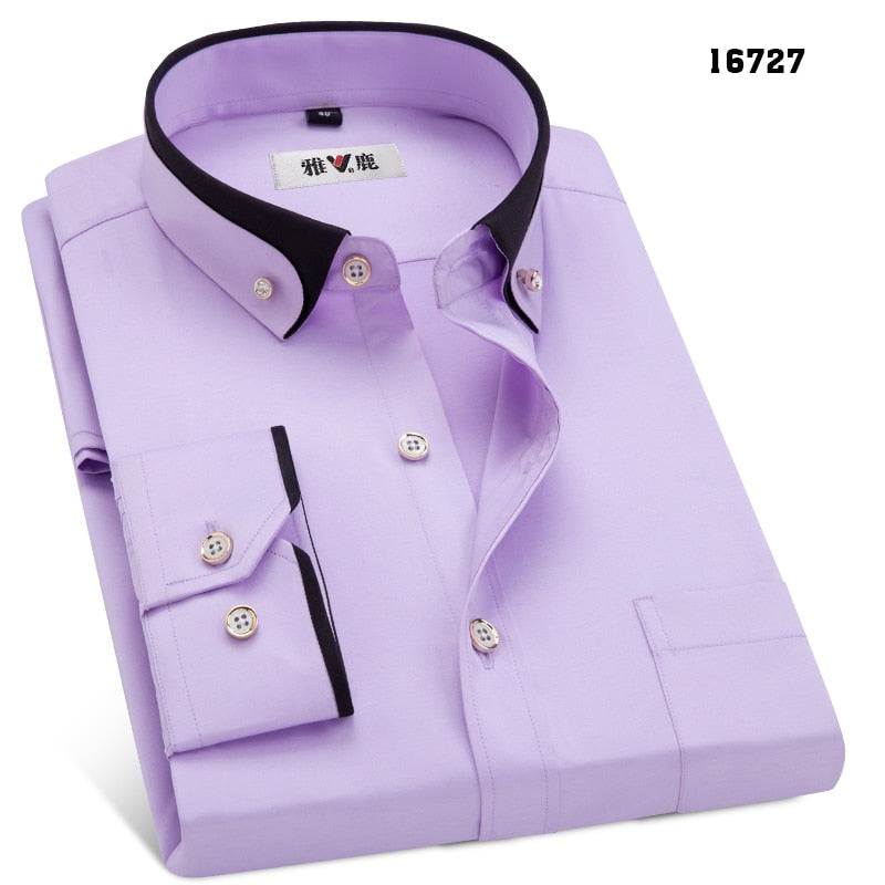 New Autumn Mens Dress Shirts Social Long Sleeve Double Collar Button-Up Patchwork Non-iron Slim Fit Men Casual Business Shirts