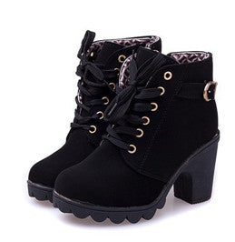 New Autumn Women Boots High Quality Solid Lace-up European Ladies PU Leather Shoes Fashion Boots Women XWX367