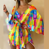 New Summer Women Elegant Dresses Sexy V Neck Lace-up Floral Printed Mini