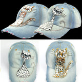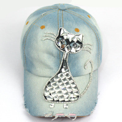 New top quality water wash jean retro cat Zircon ornament snapback caps baseball caps casquette ourdoor casual hip hop sun hats