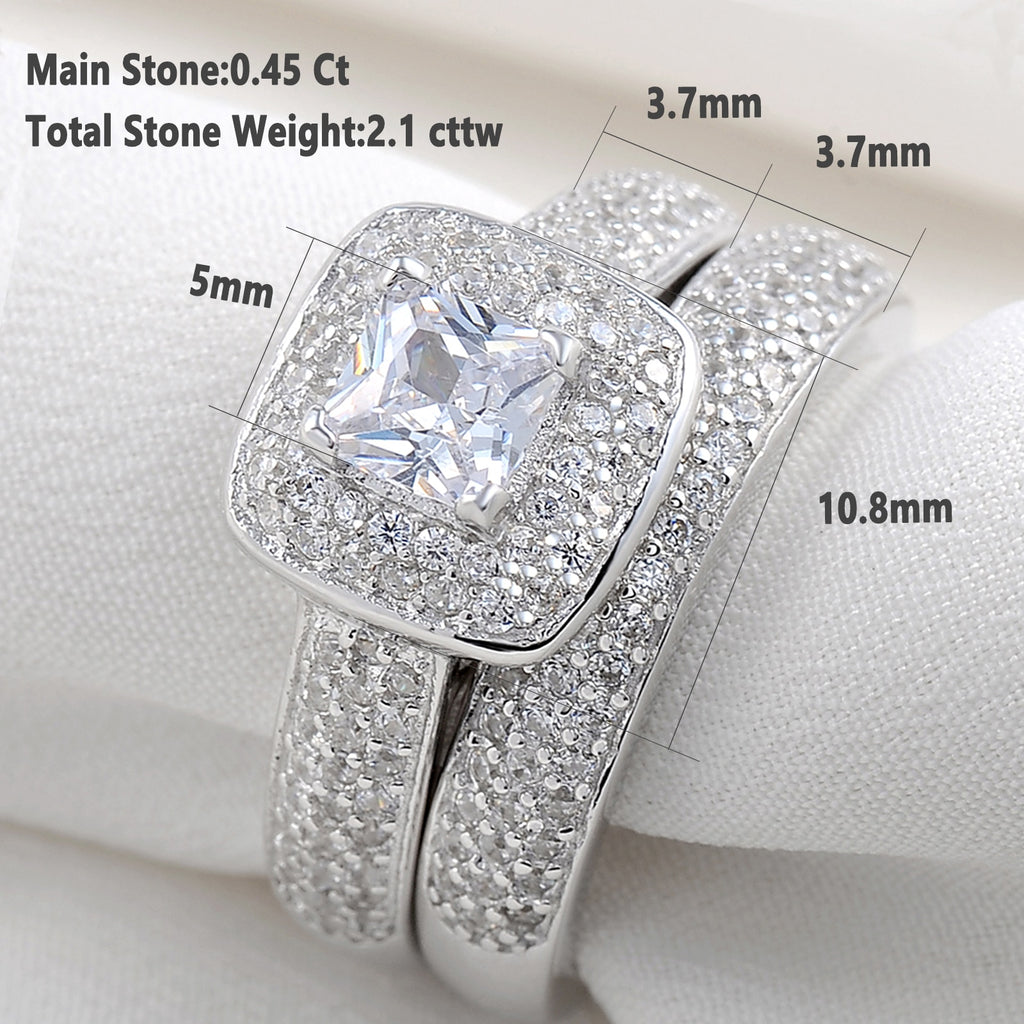 Newshe 2 Pcs Classic Wedding Rings For Women 925 Sterling Silver Jewelry