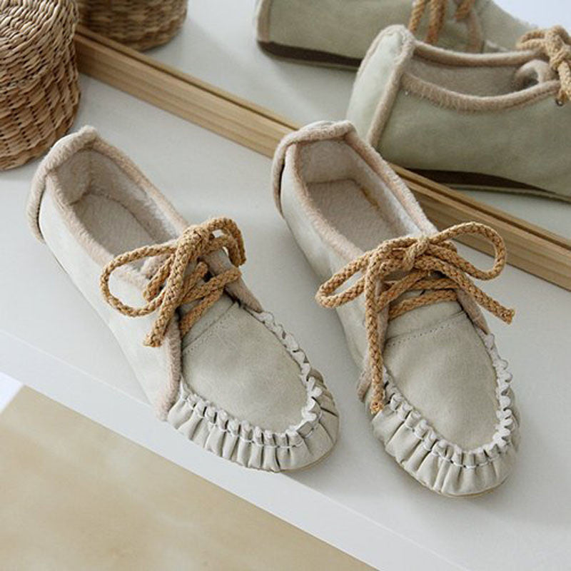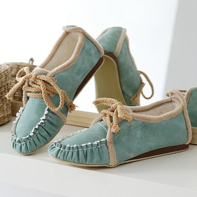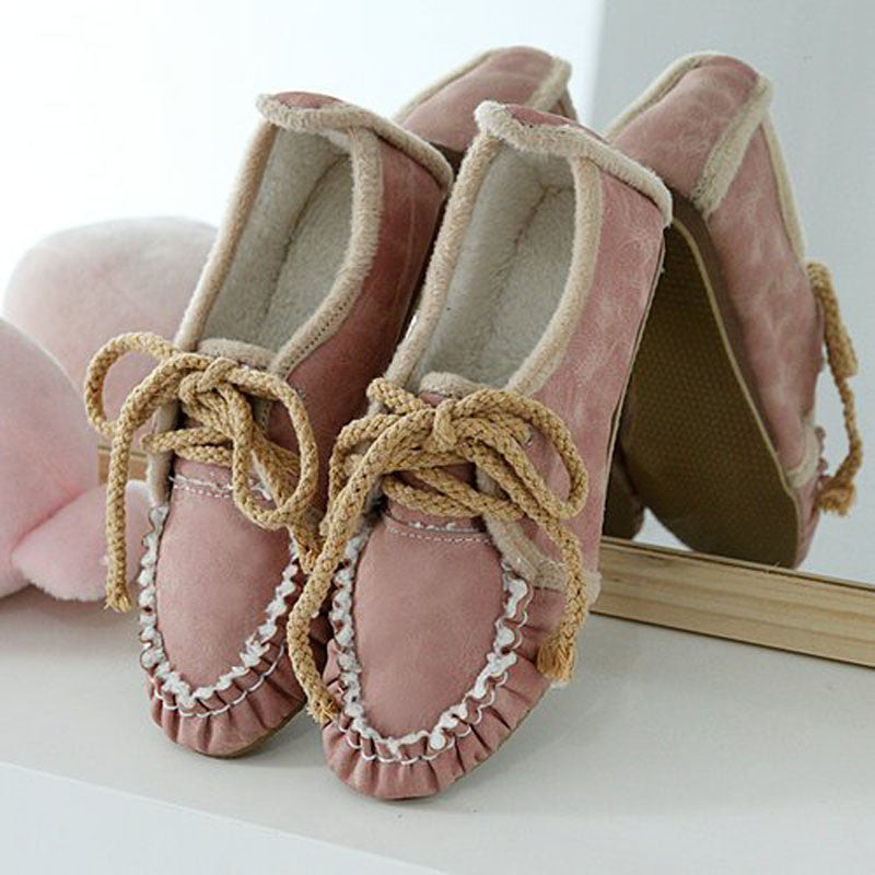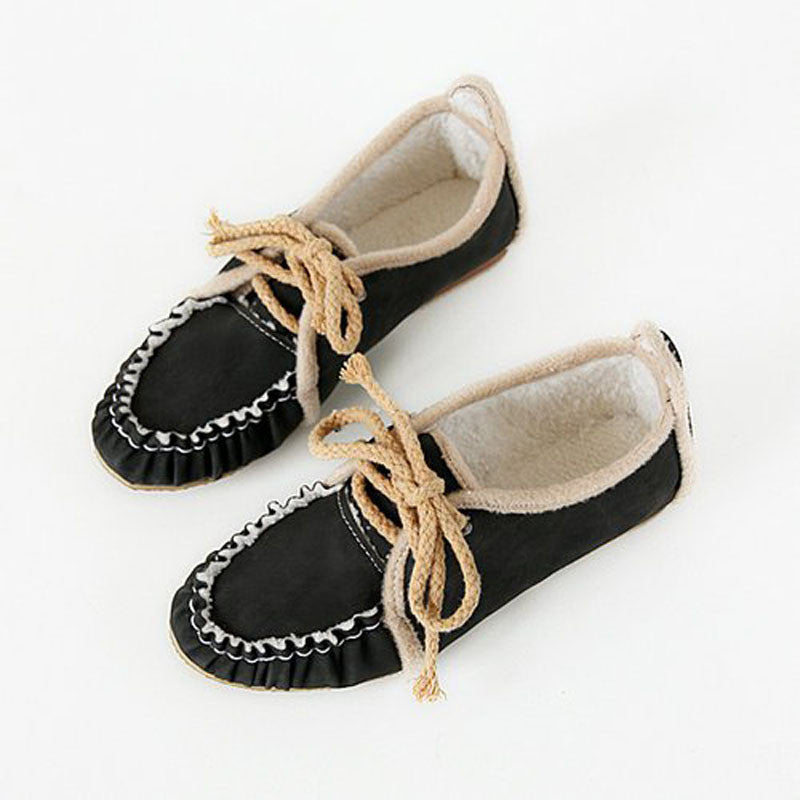 ON sale Specials Winter lace-up pleated Flat boots for women flat Snow shoes-QL-3-2