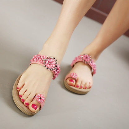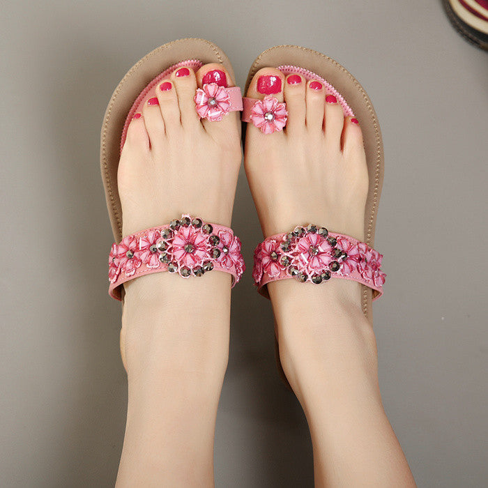 Pink Apricot PU 3D Flowers Thong Sandals Slippers For Women 2016 Summer