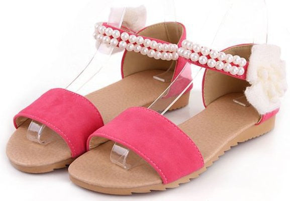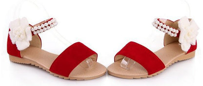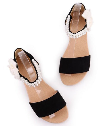 Plus Big size 34-43 Women Sandals Fashion Bohemia Beade Ankle Strap Flower Summer Shoes Open Toe Flats Heel Female Sandals