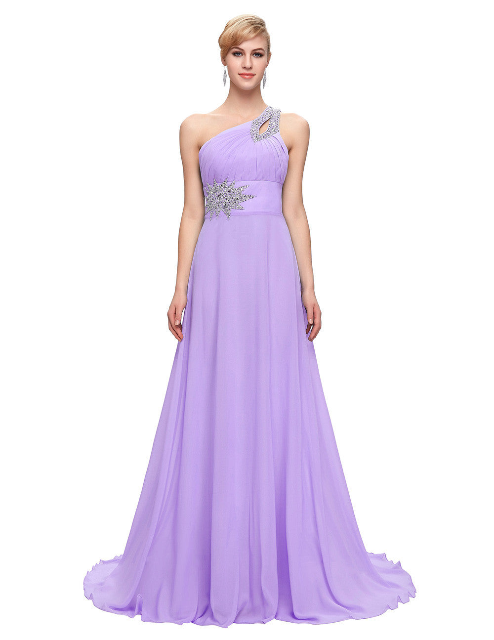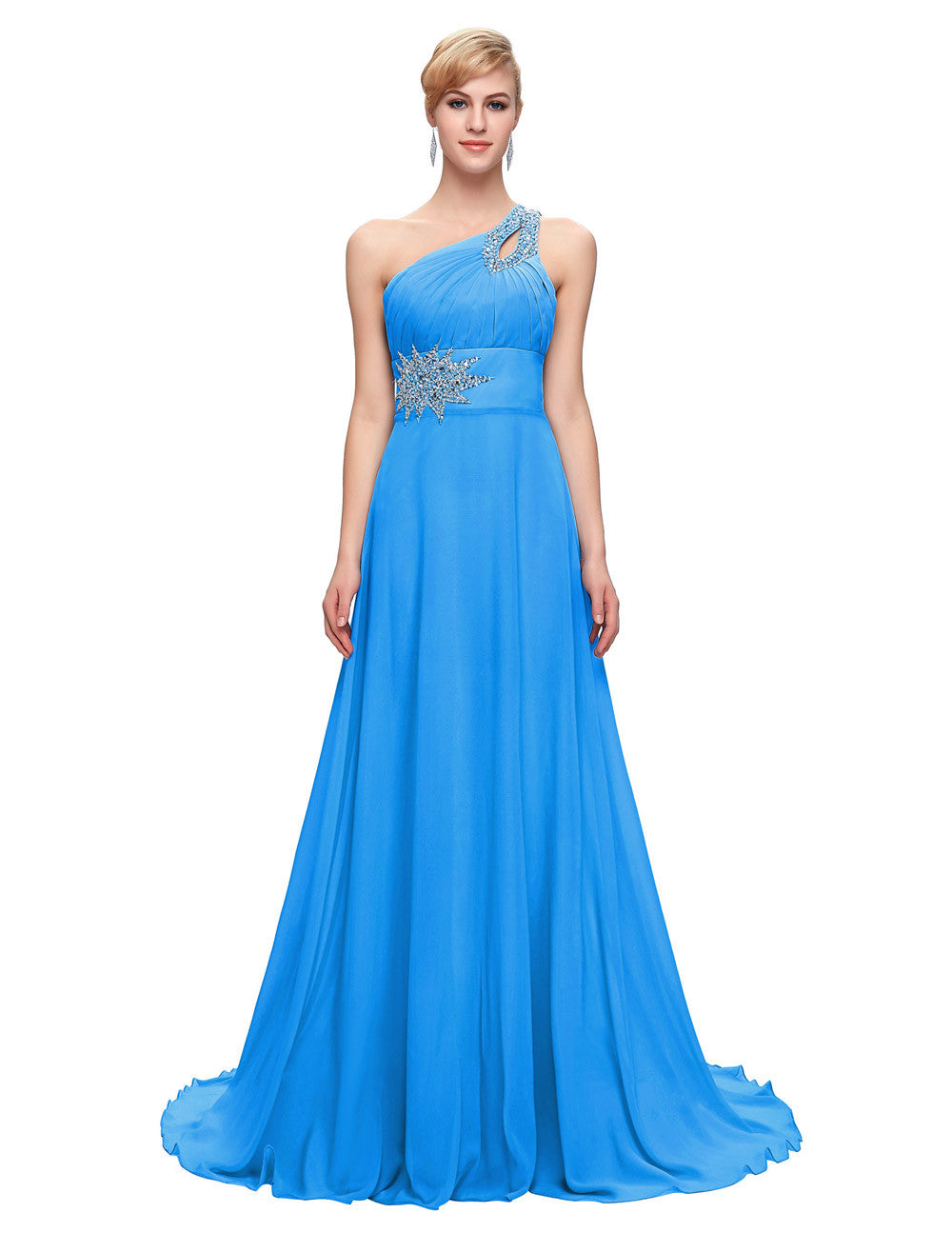 Real Photo One Shoulder Red Royal Blue Purple Chiffon Long Evening Dress Party