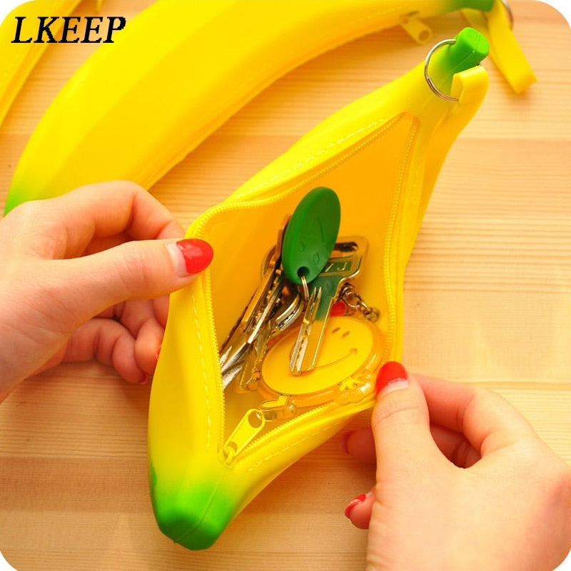 Cute Novelty Funny Silicone Portable Yellow Banana Coin Purses Multifunction Pencil Case Purse Bag